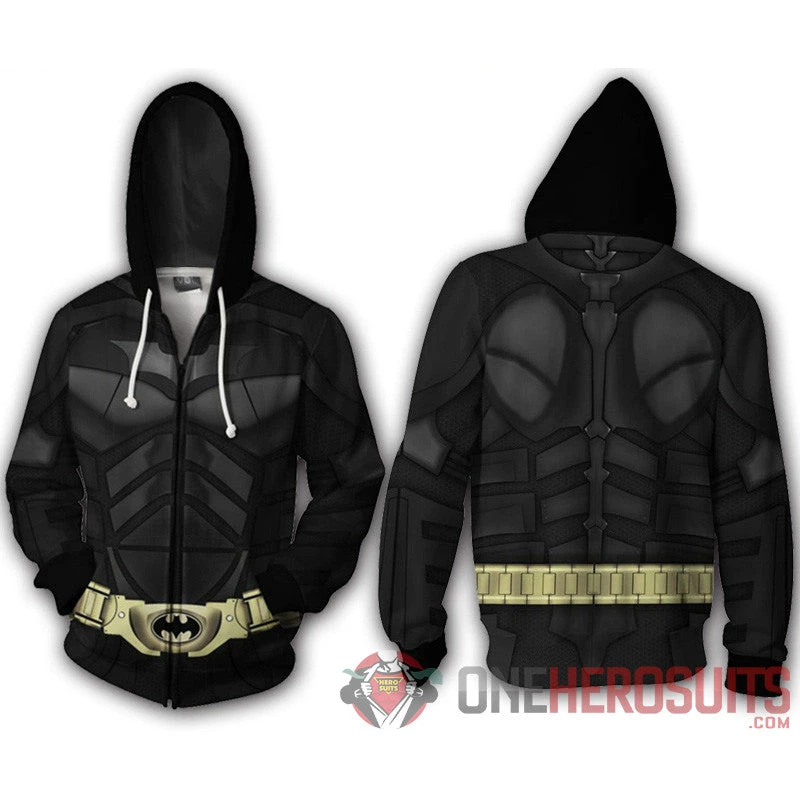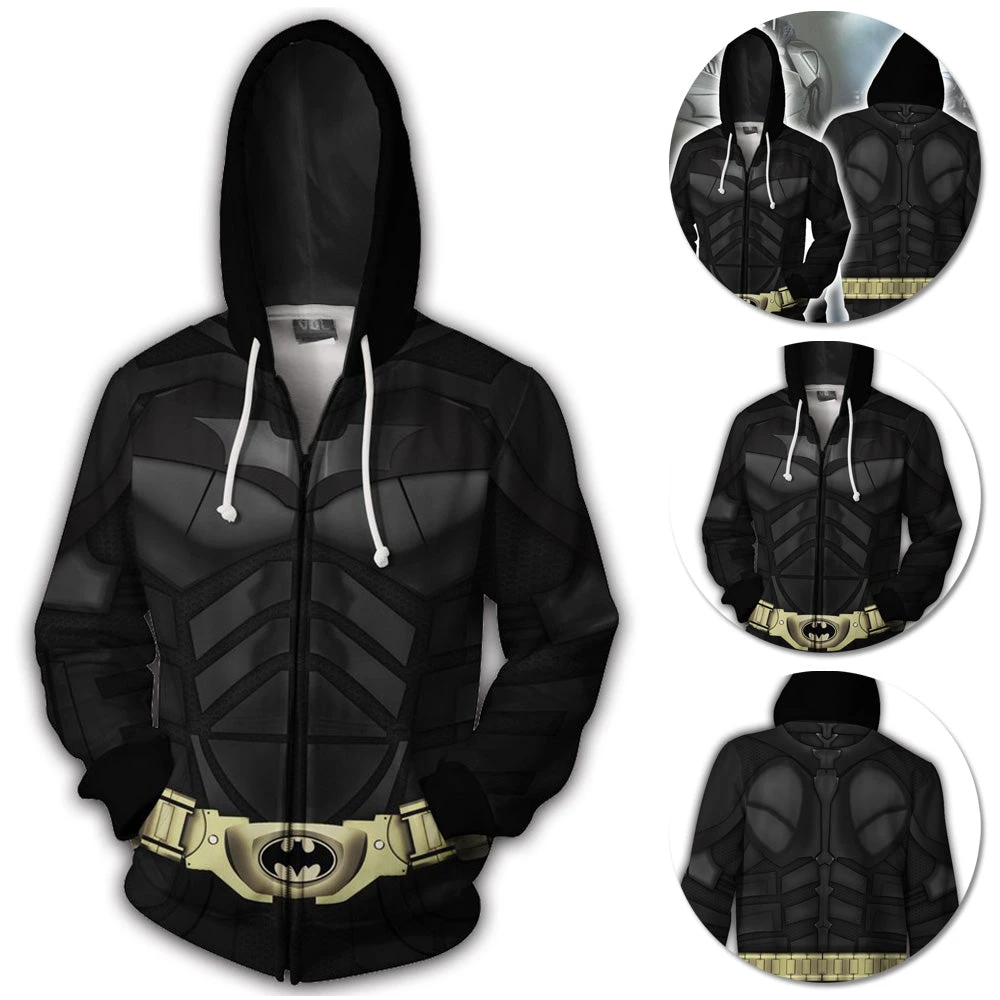OneHeroSuits Batman Hoodie Batsuit Creative Printed Zip-Up Hooded Sweatshirt Cozy Hoodies