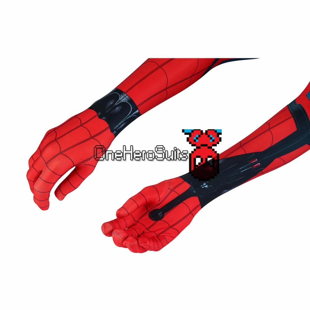 3:We have a high demand in details making for this Spider-man jumpsuit even though it’s not listed as a high-priced costume.We noticed that many Spider-man jumpsuits in the market have the same problem: the patterns are misaligned at the seams area where they connect.But we’re sure that 99% of patterns on our Spider-man costume are aligned perfectly.