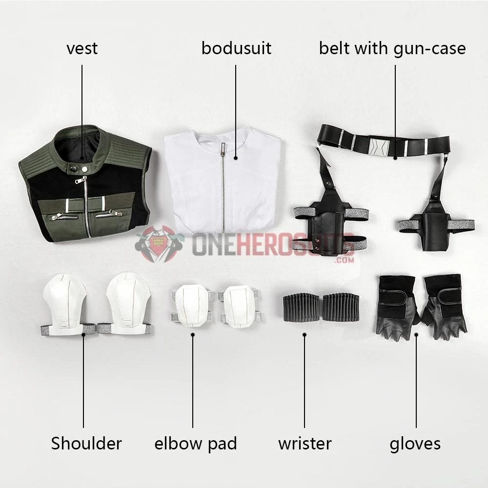 Full Set Includes: Jumpsuits, vests, elbow pads, shoulder pads, belts and accessories, gloves, wrists